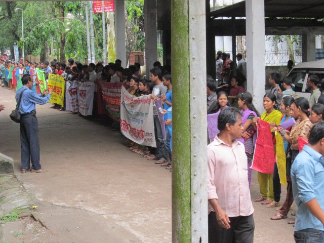 Indigenous people form a human chain in front of Mymensingh Press Club yesterday to press home their different demands including constitutional recognition.Photo courtesy: The daily starPhoto: UPDF brings out a procession carrying red flags in Khagrachari demanding constitutional recognition as Indigenous . courtesy: chtnews.com